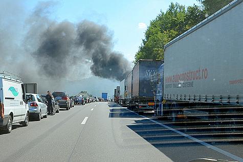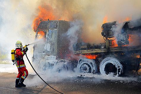 Aus bisher unbekannter Ursache geriet ein LKW-Zug am Nachmittag des 23. Juli 2013 auf der A21 in Fahrtrichtung Westen in Brand.