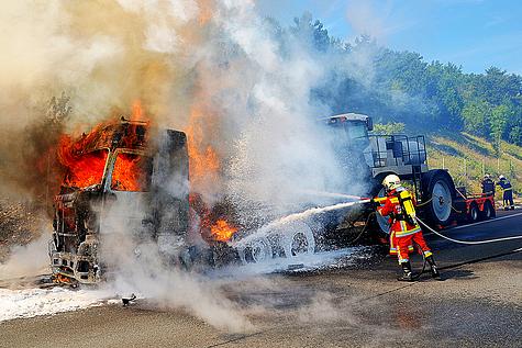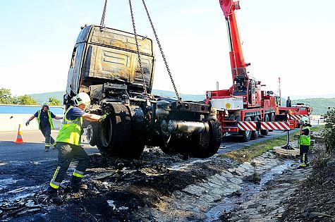 Kraneinsatz nach LKW Brand auf der A21