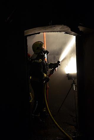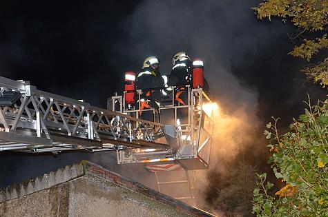 Aufgrund der hohen Brandlast musste jedoch ein weiterer Atemschutztrupp zur Brandbekämpfung in den Dachboden des Gebäudes geschickt, sowie ein ein zusätzlicher Trupp über die Drehleiter zum Öffnen der Eindeckung und anschließender Brandbekämpfung des Daches entsandt werden. Bei der Brandbekämpfung erlitt ein Feuerwehrmann trotz vollständig getragener Schutzausrüstung eine leichte Verletzung vermutlich durch Wasserdampf am Hals.